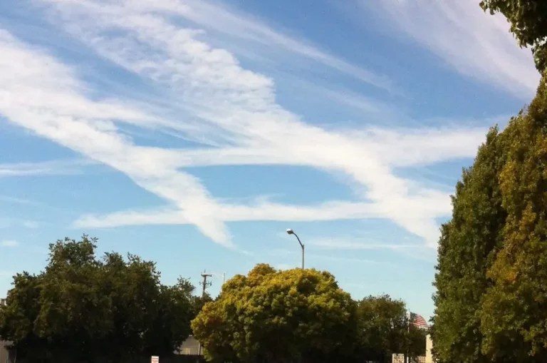 在任何特定的夜晚,雲層的類型和厚度將為化學軌跡噴氣機提供必要的 “掩護”,使其能夠整夜噴灑在天空中,它們經常在雲層上方這樣做。 經常的情況是,天空在黃昏時分會變成一個化學軌跡的井字板,然後產生一個巨大的化學雲層,這讓它們在當晚噴灑而不被發現。(見下面的照片)。