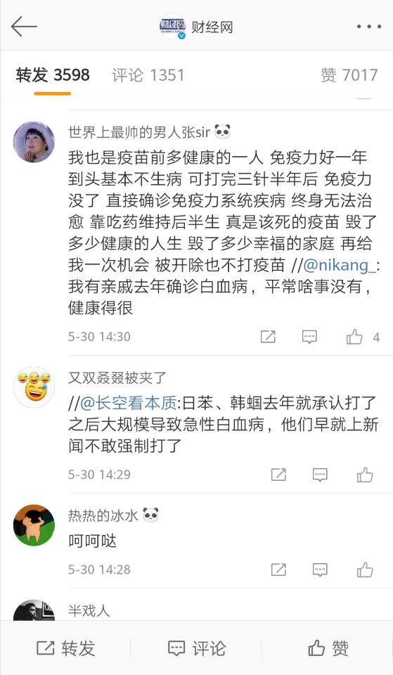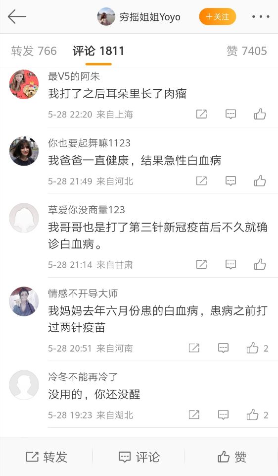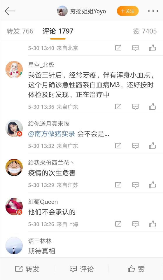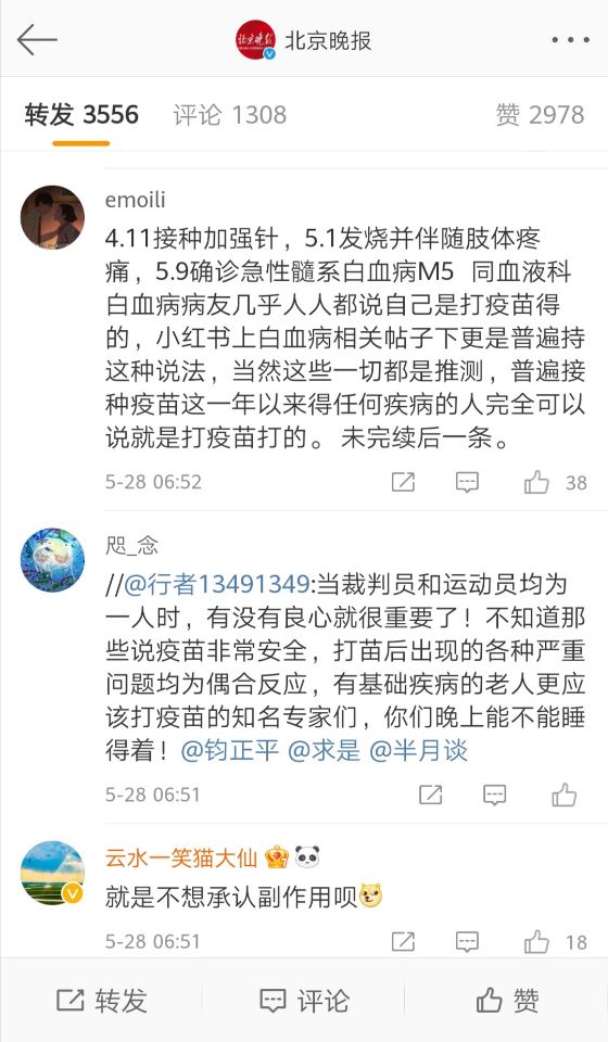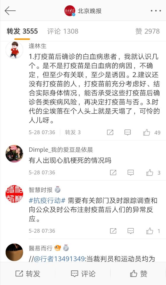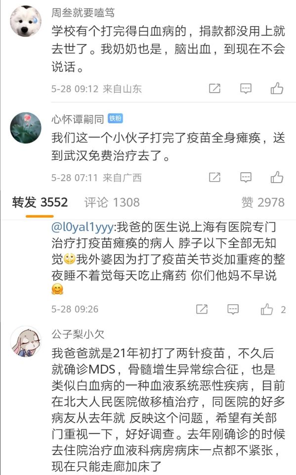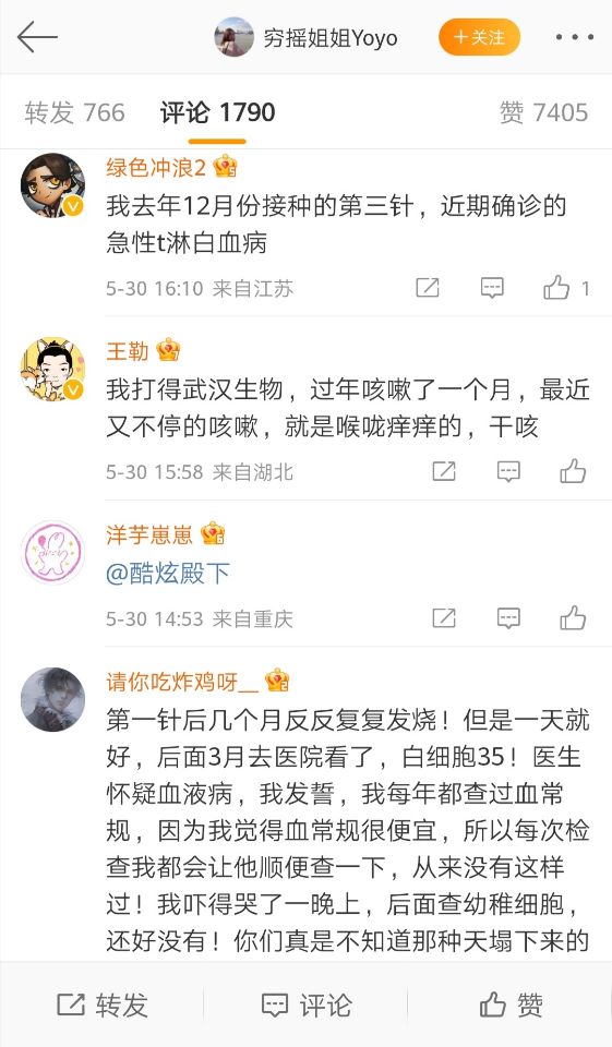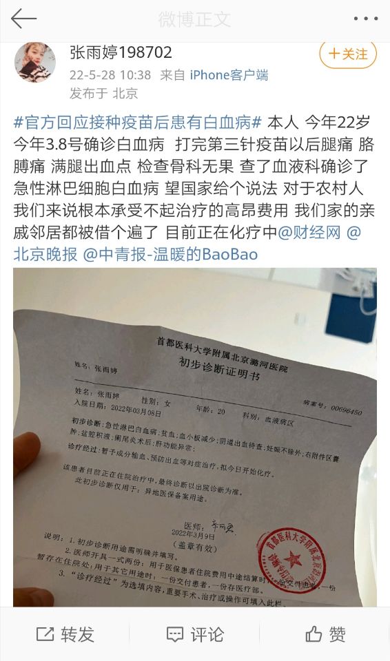 更新 5.30 “三针疫苗后两人患上急性髓系白血病” “22岁三针疫苗后确诊急性淋巴白血病”