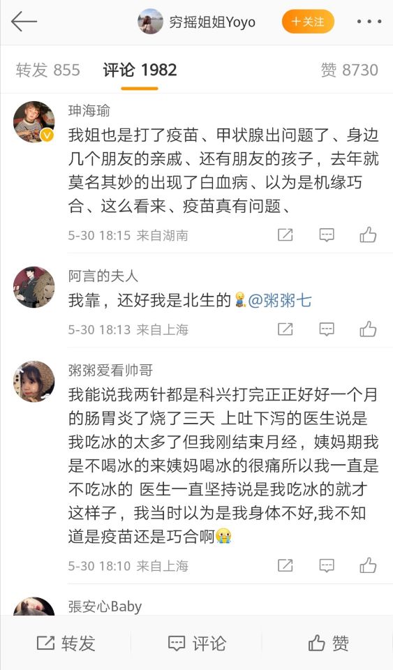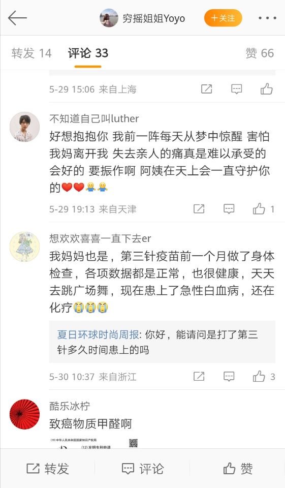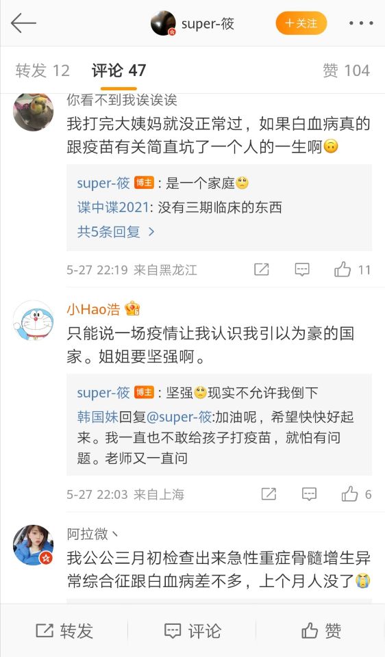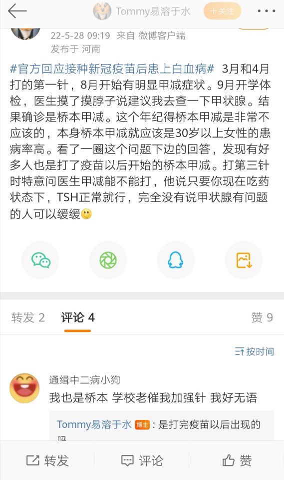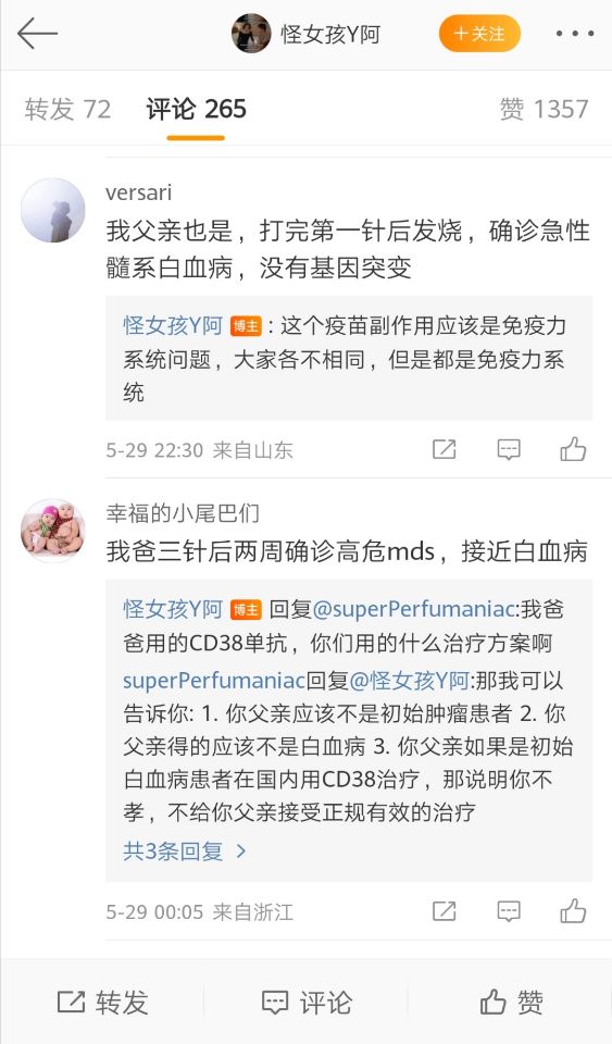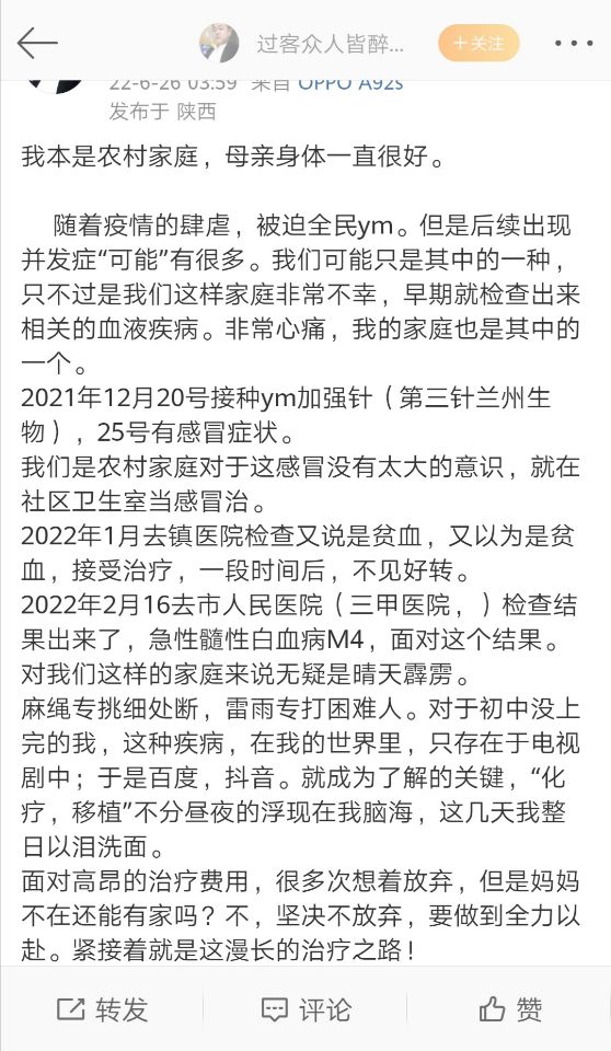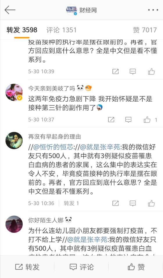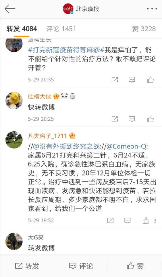 更新 5.30 “三针疫苗后两人患上急性髓系白血病” “22岁三针疫苗后确诊急性淋巴白血病”