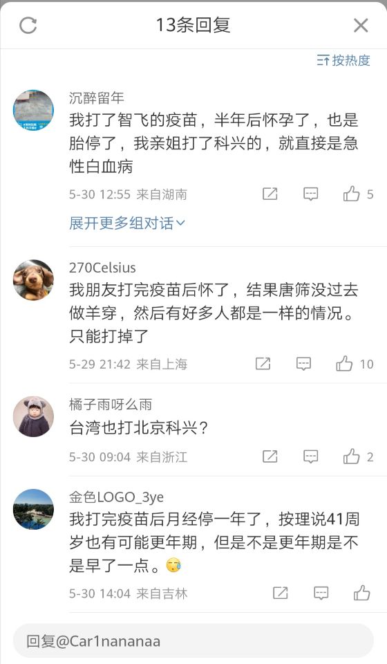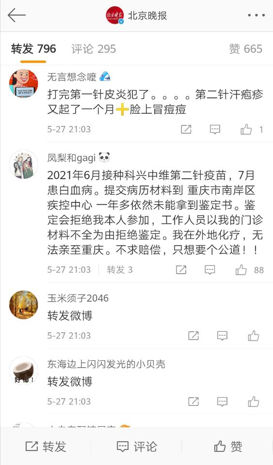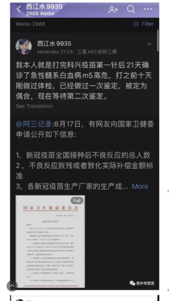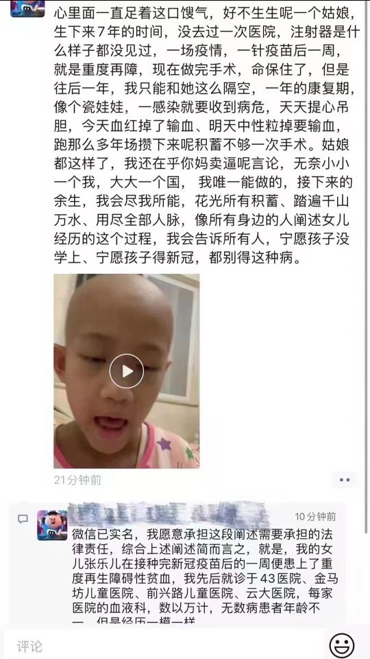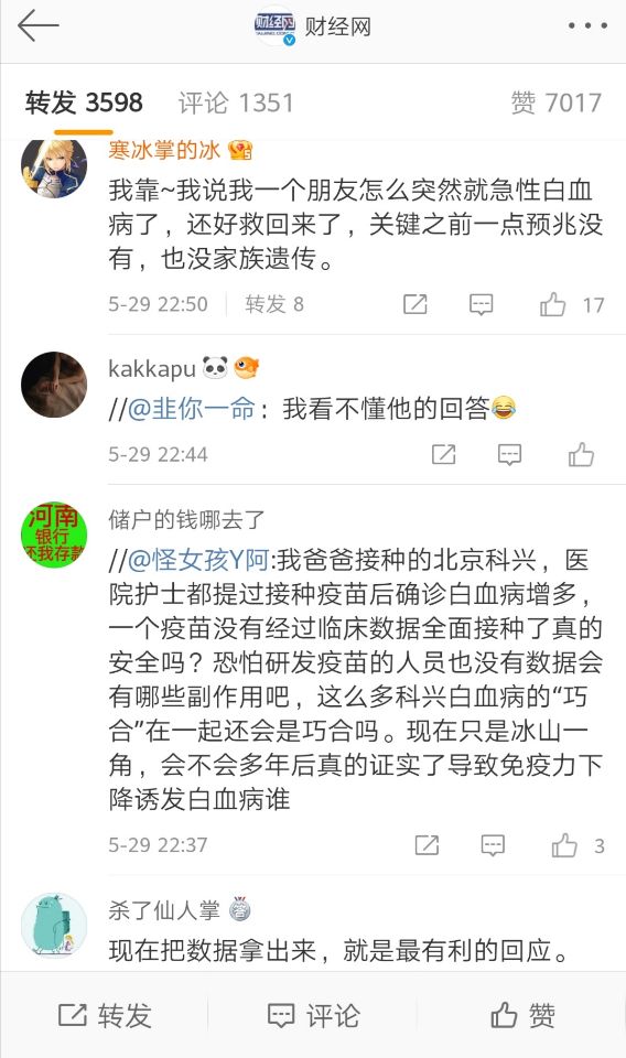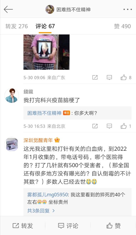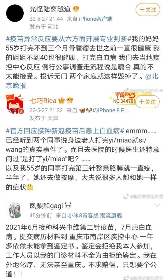 5.31 更新 “疫苗后反复发烧 多人急性白血病 并去世” “三针科兴疫苗后患急性髓系白血病去世”