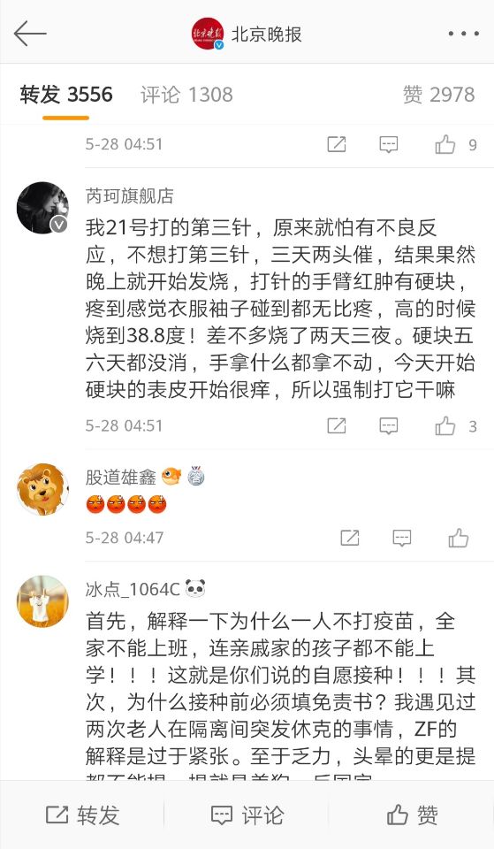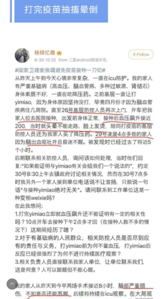 “90岁老人被强制疫苗后中风” “22岁疫苗后不断流鼻血”