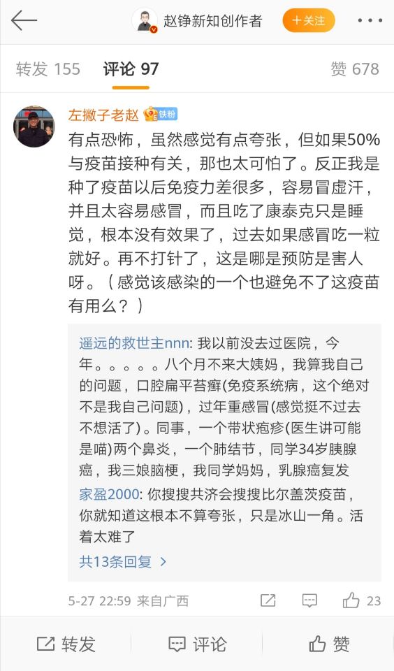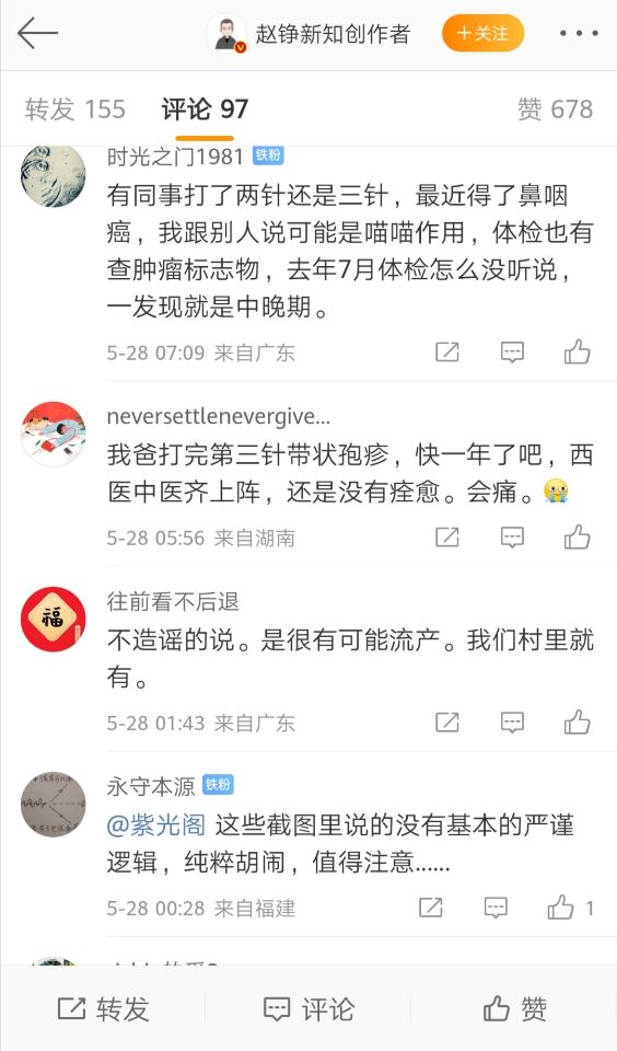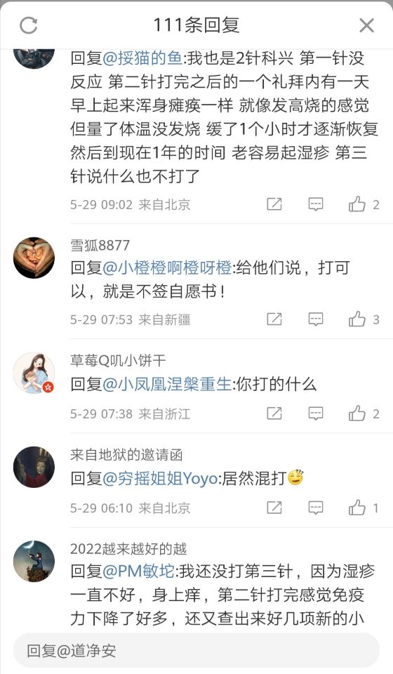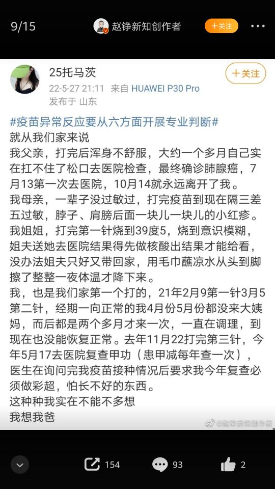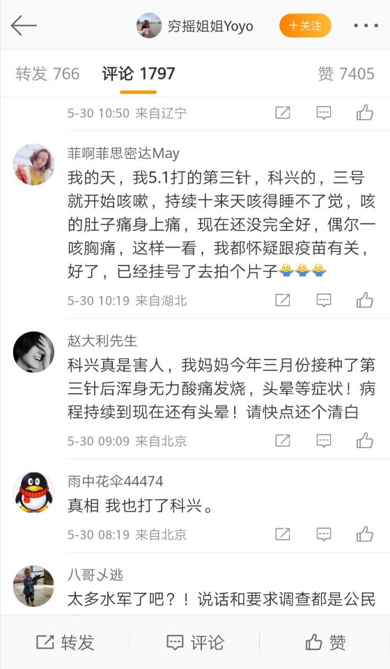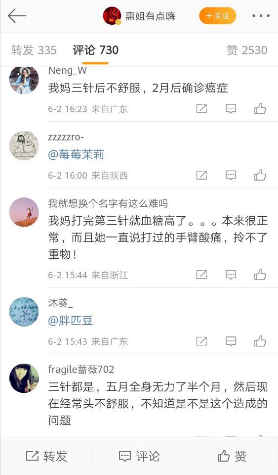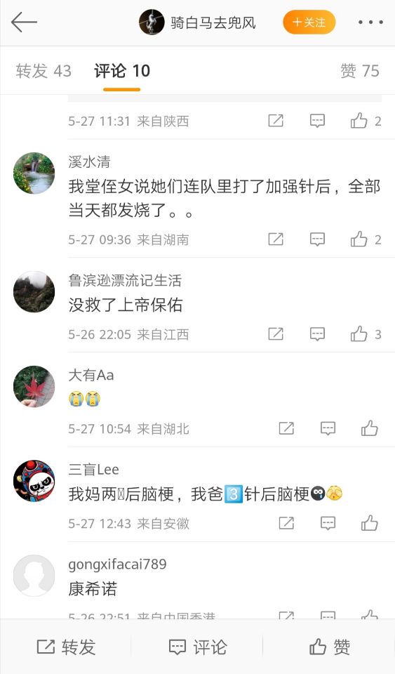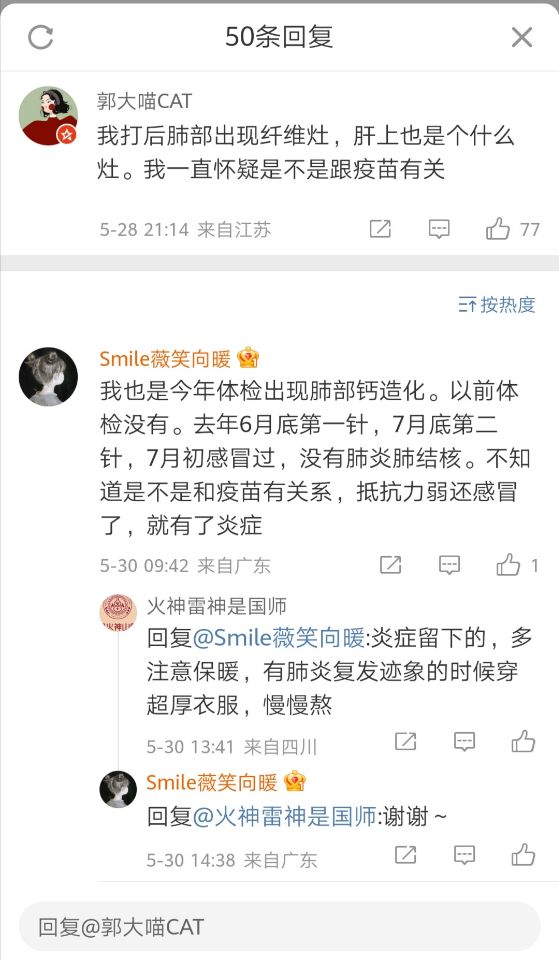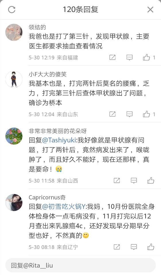 “疫苗后脑梗死 双肺结节 肝囊肿” “四针疫苗后依然感染病毒 咳嗽严重”