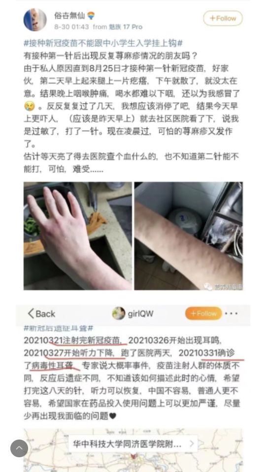 疫苗后多人耳鸣 肺结节 荨麻疹 2