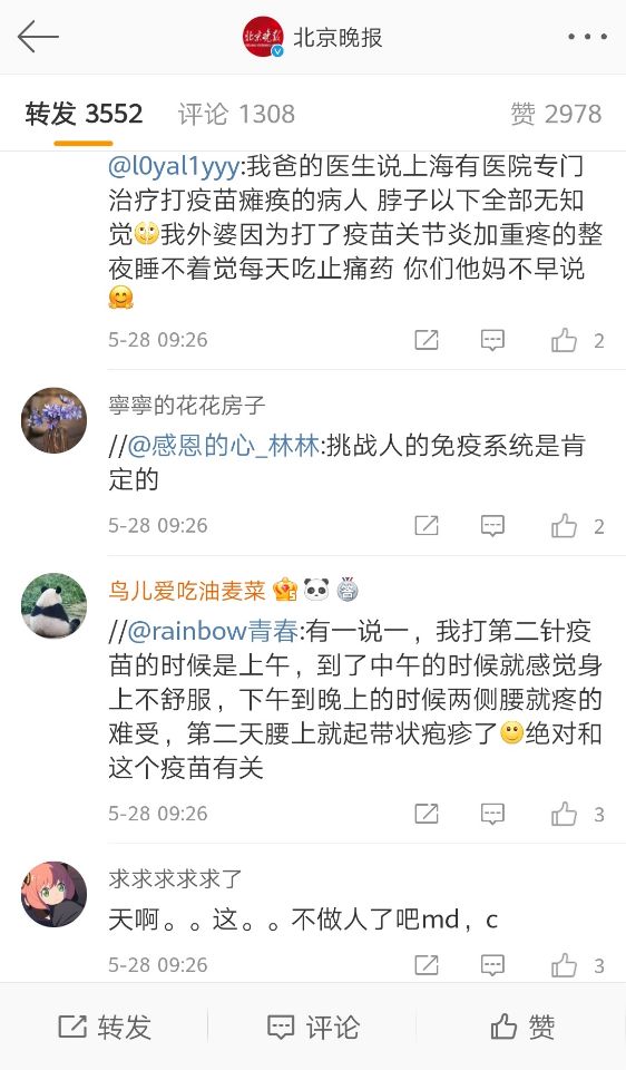 “疫苗后多人得了带状疱疹 免疫力下降” “疫苗后多人青壮年脑出血去世 另有得白血病 带状疱疹 起湿疹荨麻疹 神经性耳聋等”