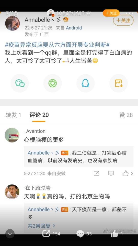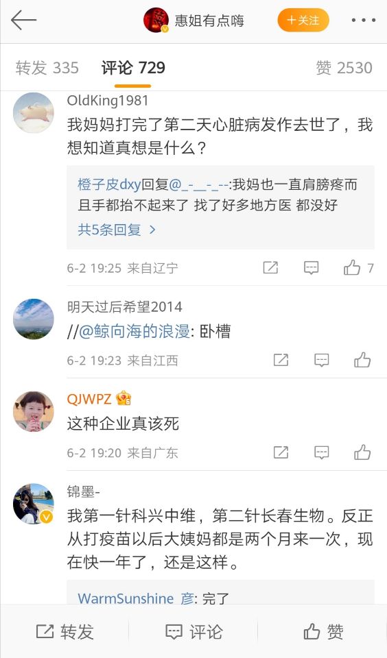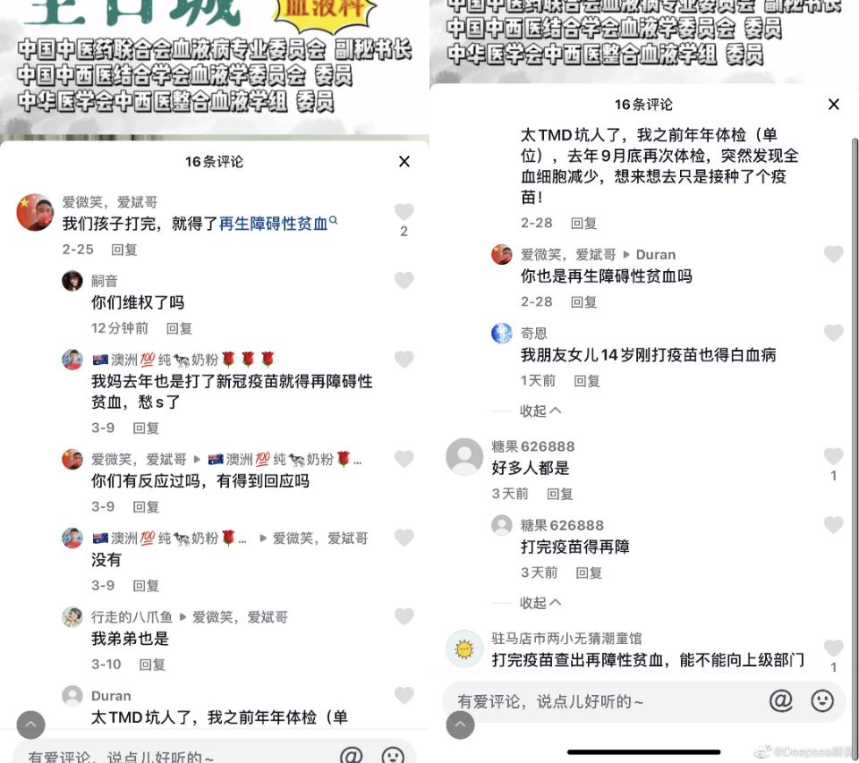 “疫苗后老人确诊肝癌晚期 一名去世 一名住院 患系统性红斑狼疮” “科兴三针后贫血加重 确诊系统性红斑狼疮”
