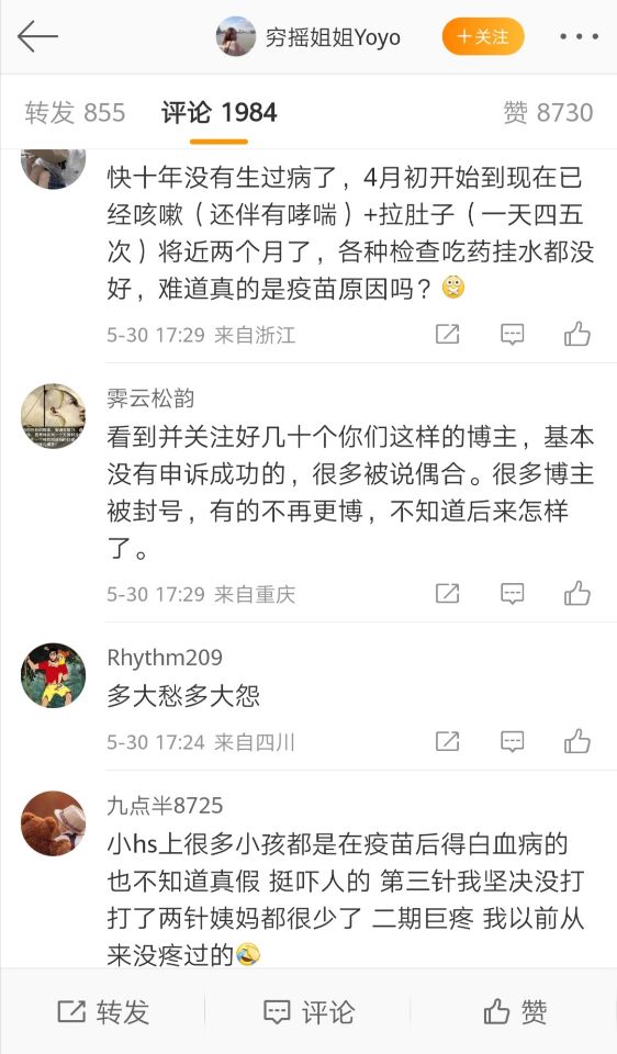“疫苗一个月后生病 视网膜堵塞” “疫苗后基因突变免疫系统崩溃 疫苗十天后脑梗肺癌”