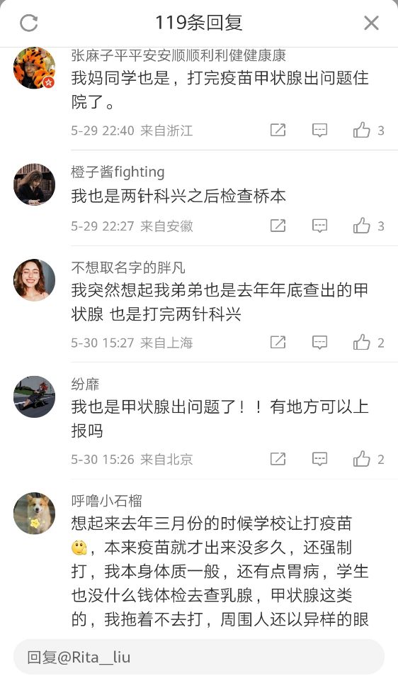 “两针科兴后甲状腺肿大” “疫苗后甲状腺结节 淋巴结肿大 甲减等”