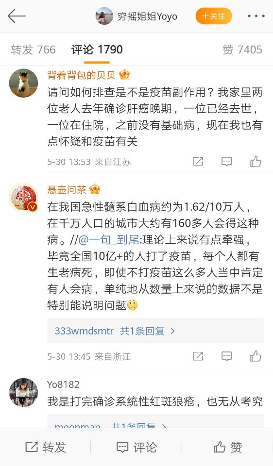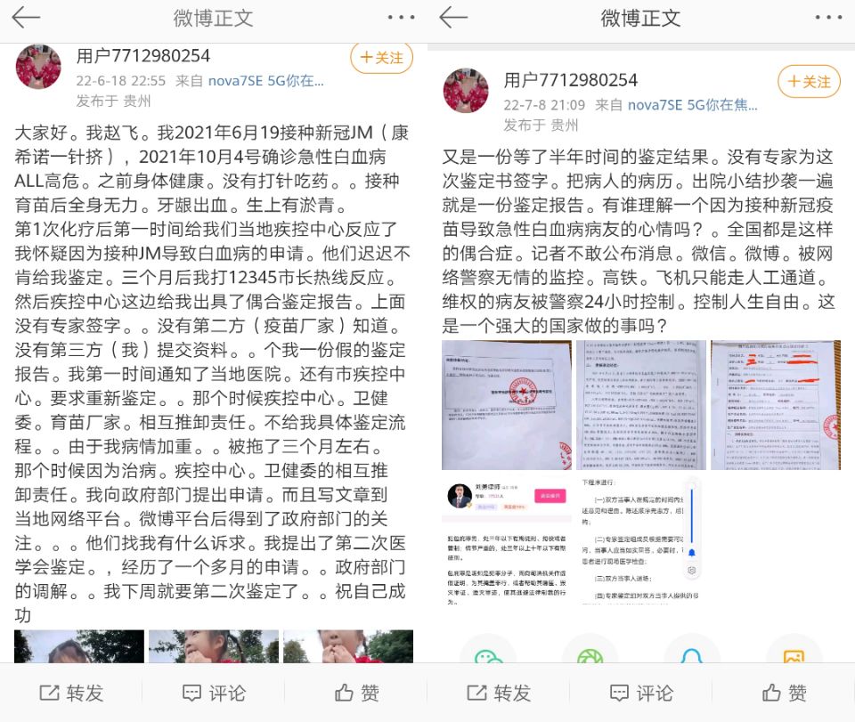 “一针疫苗后确诊急性髓系白血病 另有高危MDS” “疫苗后月经紊乱 出现多囊 一年确诊慢性白血病”