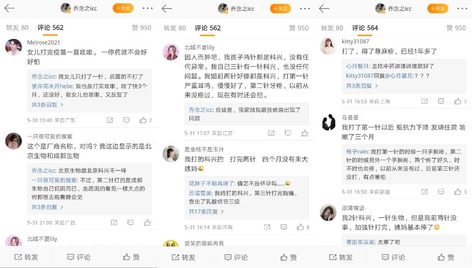 “科兴疫苗后出现乳腺癌 月经不正常” “一针疫苗后淋巴肿大 乳腺淋巴扩散”