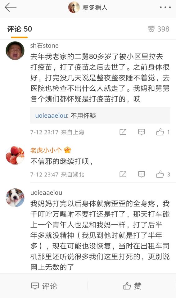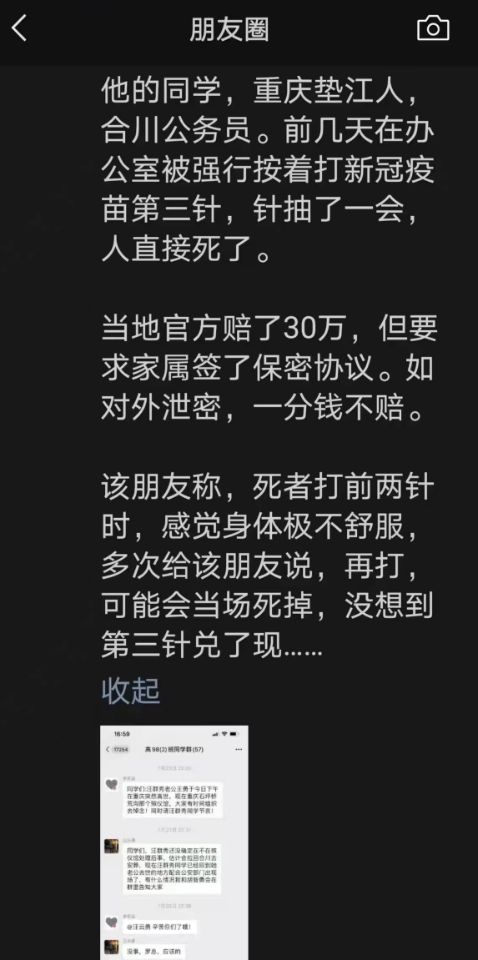 “三针疫苗后心梗 头上皮肤长疮 肉里有硬块” “疫苗没几个月后脑梗”