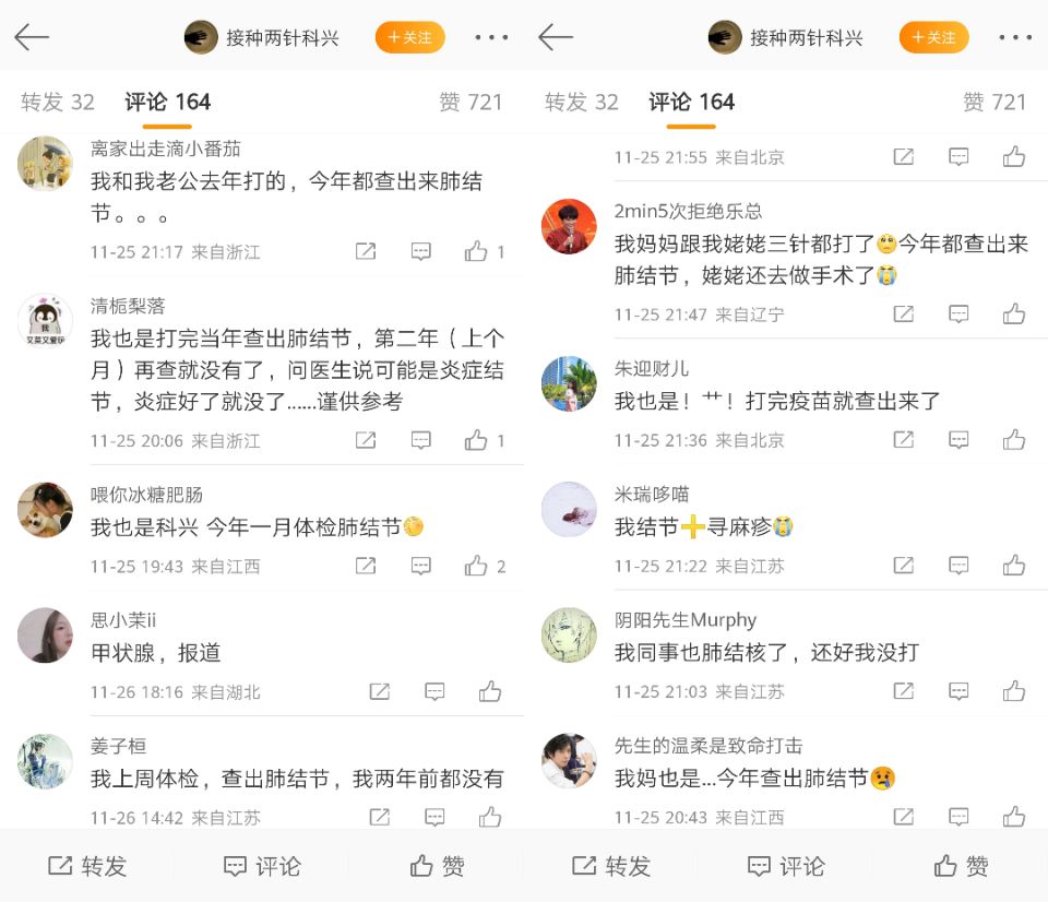 多人疫苗后出现肺结节 荨麻疹 鼻炎等问题